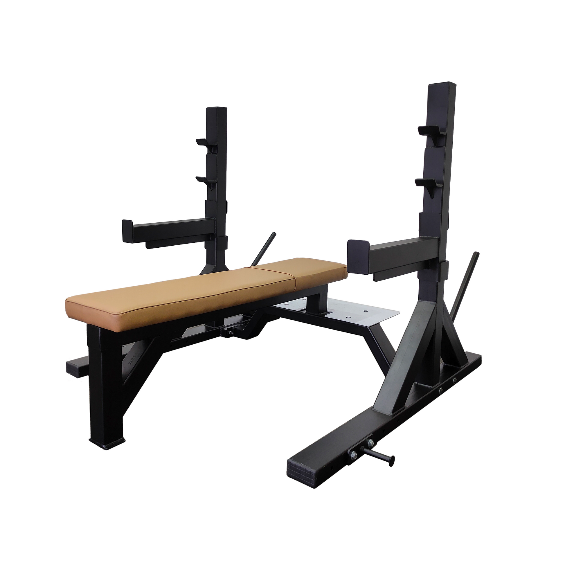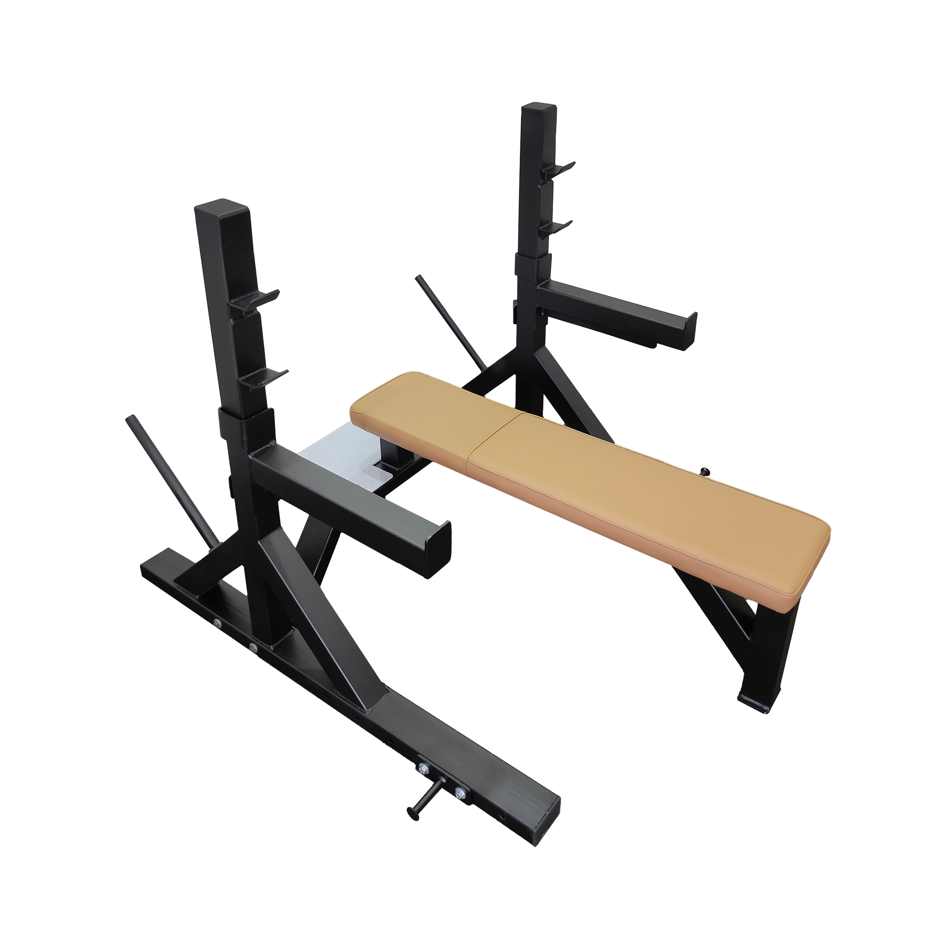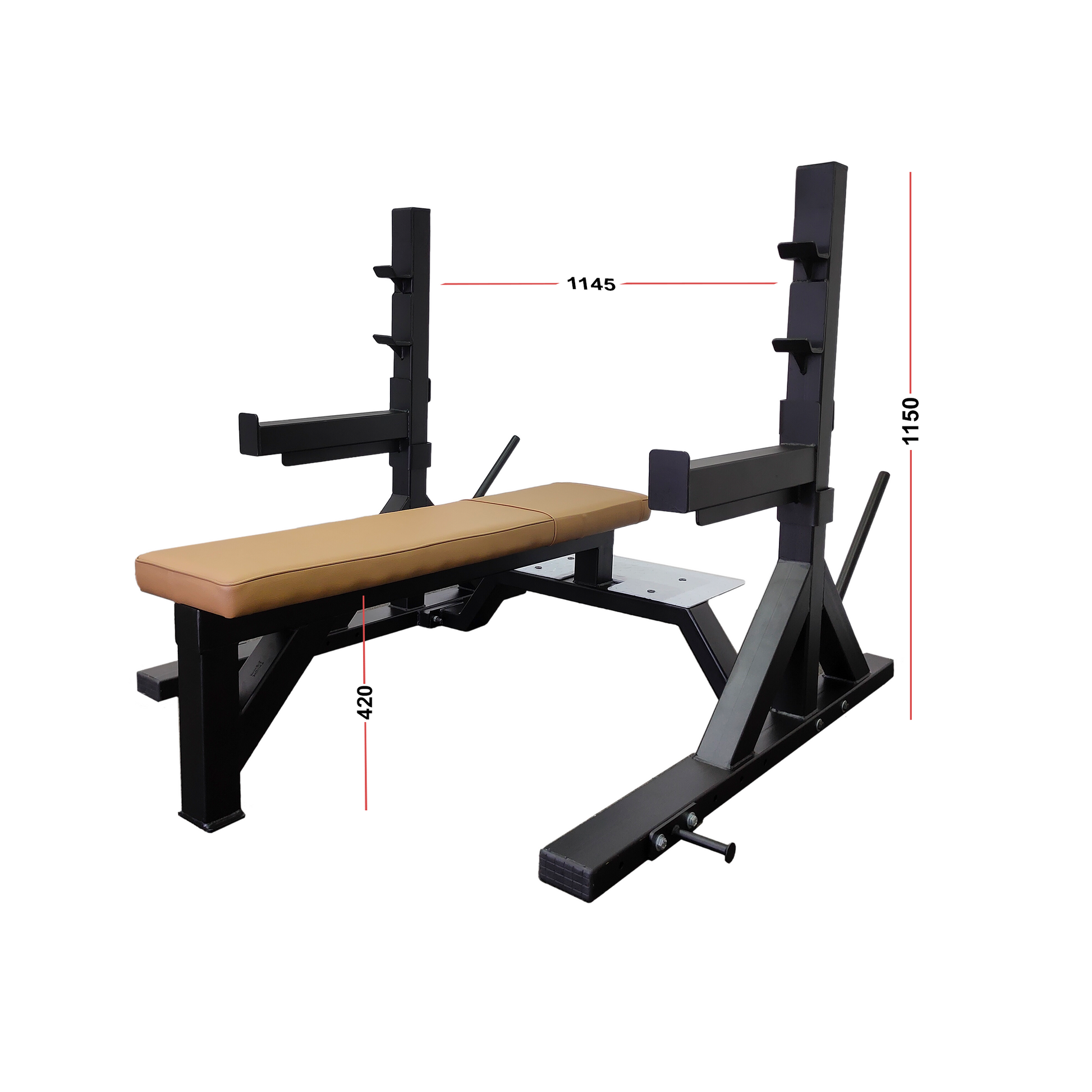 Each safety rod measures 450MM in length, offering reliable support and peace of mind during heavy lifts. The bench is also equipped with two fixed rod holders, allowing for convenient and secure bar placement.