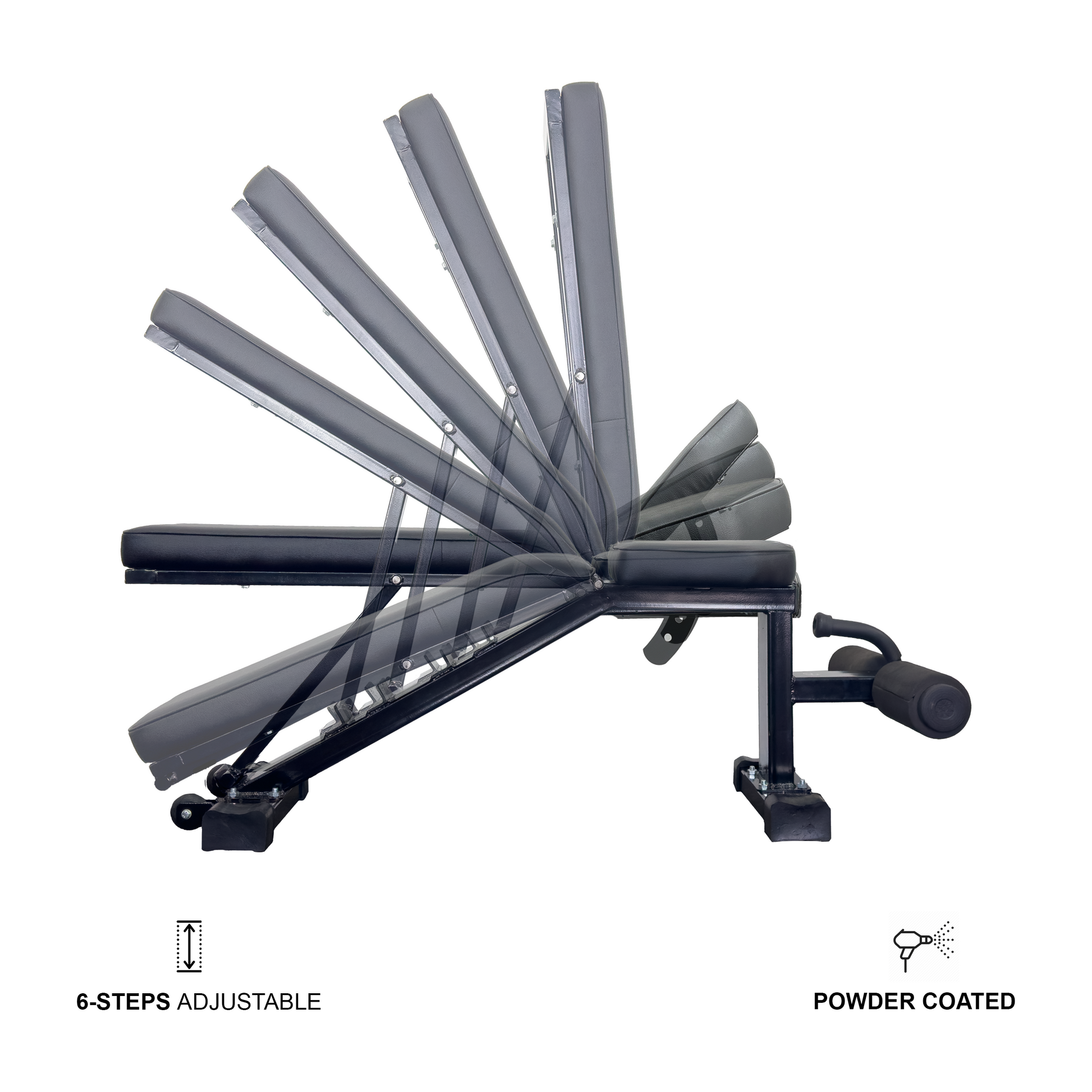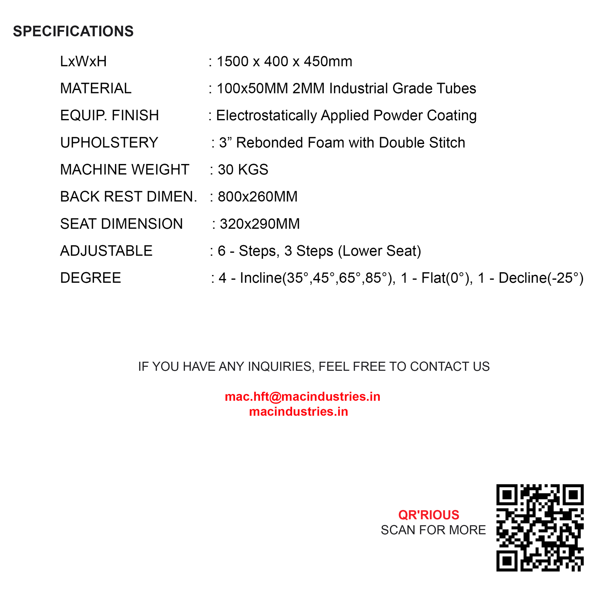 Mac - 6011A - Adjustable Utility Heavy Bench (Flat, 3 Incline & 1 Decline) - 6 Steps Adjustable and 3 Steps Adjustable Seat, Home & Gym Purpose