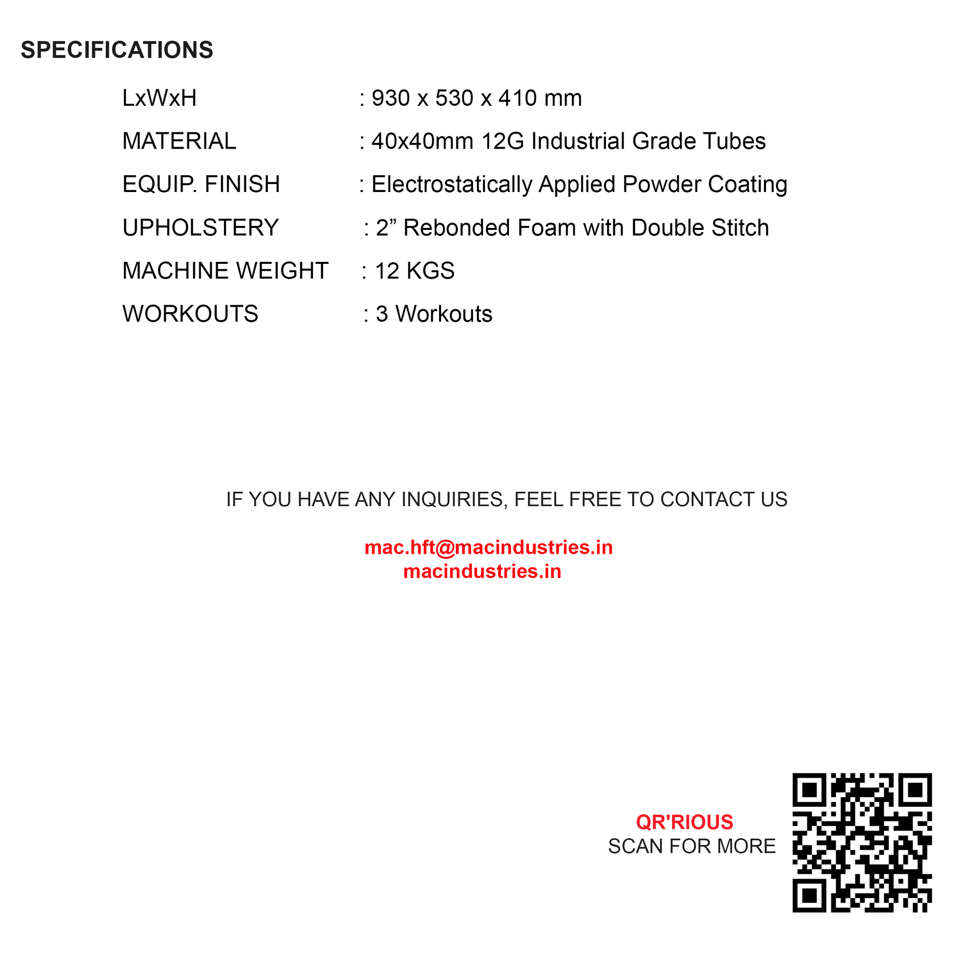 Introducing the Mac Industries 3-in-1 Chin-Up, Leg Raise, and Dip Stand — the ultimate multifunctional equipment designed to elevate your fitness routine to new heights. Crafted with precision and durability in mind, this innovative apparatus seamlessly combines three essential exercises into one compact unit, maximizing your workout potential in the comfort of your own home or gym space.
