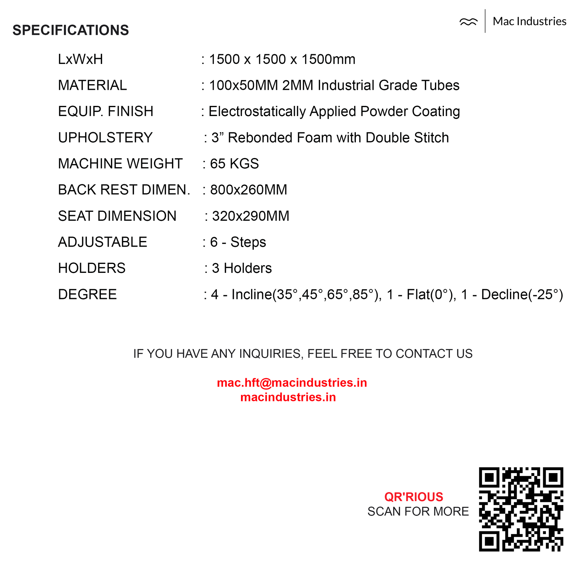 Enhance your strength training with the Mac Industries Olympic Bench Press, meticulously engineered for unparalleled durability and stability. Constructed from 4x2 (100x50mm) heavy-duty Industrial Grade MS Pipe, this bench press is designed to withstand intense workouts. Its powder-coated finish prevents chipping, rust, and corrosion, ensuring long-lasting performance.